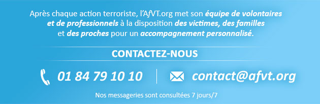 La vocation de l’Association française des Victimes du Terrorisme est d’agir au plus près des victimes du terrorisme pour accompagner leur travail de guérison, de reconnaissance, de vérité, de deuil et de mémoire tout en soutenant la lutte contre la banalisation de la violence et la barbarie.