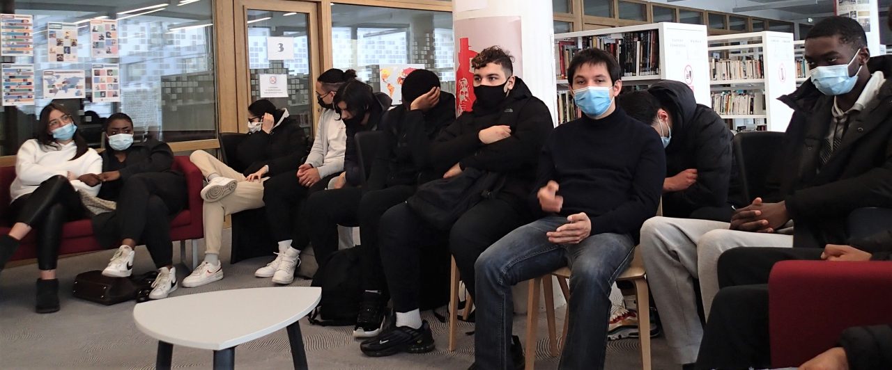 On est au lycée Lucie Aubrac de Courbevoie, avec Sophie Davieau-Pousset que nous connaissons bien et Milène Tournier qui nous accueille au CDI et nous accompagne. Notre projet s’intitule « J’observe, je dessine ».