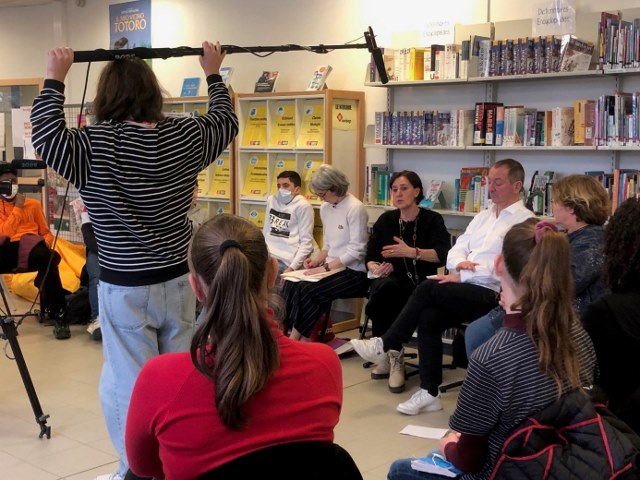 Après avoir présenté le projet de film aux élèves d’une classe de 3ème du collège Rabelais dans le quartier Belle Beille d’Angers, Xavier Liébard et Pénélope Lamoureux ont suivi toutes les étapes d’une action éducative en collège : la préparation, la rencontre ainsi que le retour sur expérience. La réflexion portait, dans le cadre du Parcours citoyen et de l’éducation à l’image, sur l’engagement.