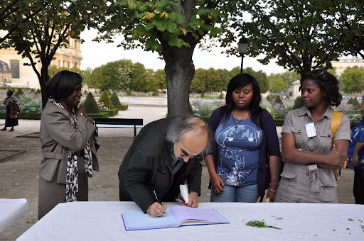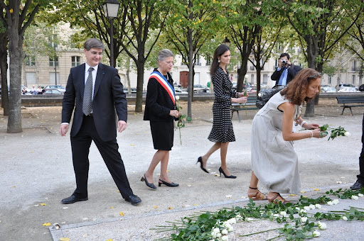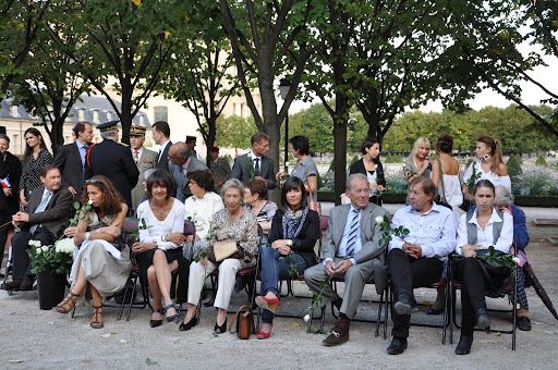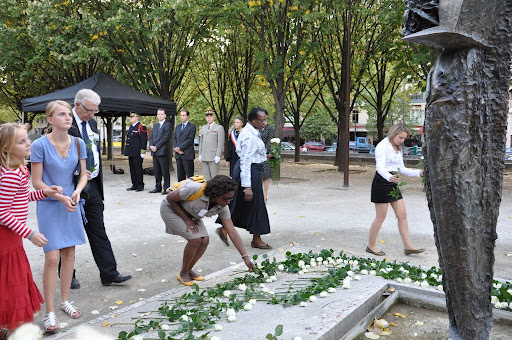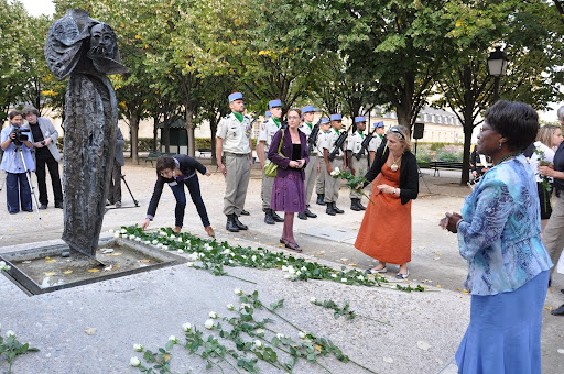 Hommage aux victimes du terrorisme devant statue Parole portée (Invalides, Paris) le 19 septembre