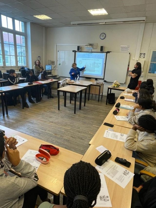 Mon rapport au Lycée Verlomme est bien différent des autres lycées dans lesquels j’ai pu intervenir. J’ai vécu, de 2019 à 2023 à quelques centaines de mètres de l’établissement et, un détail qui n’en est pas un, Virginie Ehrhardt, qui y est professeure, est l’une des meilleures amies de Stéphane Toutlouyan, mon potage (contraction de pote et otage, groupe d’amis constitué après le 13 novembre entre les ex-otages du couloir du Bataclan), avec qui nous avons débuté les interventions en classe fin 2019. Nous sommes en octobre 2022 lorsque Blanche Dupraz, professeure d’Anglais au Lycée Verlomme, me propose de revenir (nous sommes déjà allés à la rencontre des élèves en février 2022) et cela fait désormais 4 mois que le verdict du procès des attentats a été prononcé par la Cour d’Assises spécialement composée. Les journées entières à réfléchir à l’audience et à mon statut de victime m’ont changé et ont définitivement transformé ma façon de voir ce qui m’est arrivé le 13 novembre.