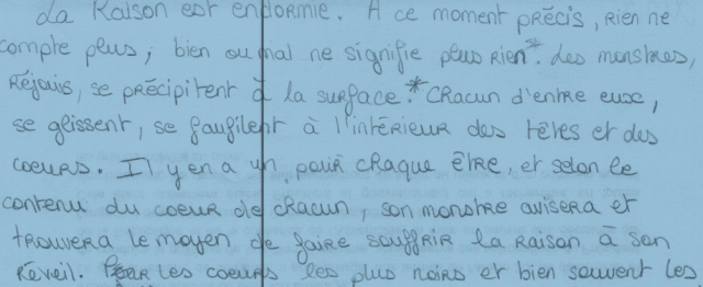 La Raison est endormie. Racontez ce que font les monstres, engendrés par son sommeil.