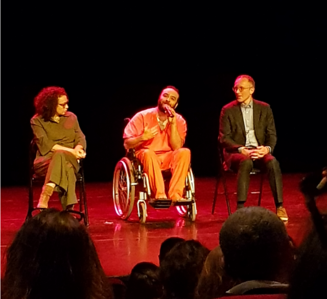 Le spectacle est terminé, la réflexion se poursuit : Ismaël Saidi, soudain départi de l’agressivité de son personnage, lance quelques blagues en prenant des chaises en coulisses, et entame un débat avec les spectateurs. Il invite l’islamologue Michaël Privot et Delphine Horvilleur, Rabbine, à le rejoindre sur scène. L’auteur et comédien prend place entre les deux intervenants, sur la chaise roulante qui lui servait d’accessoire.