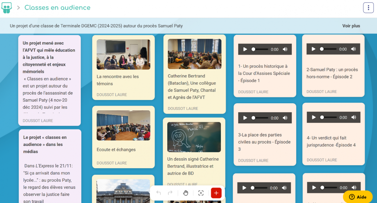Le projet « Classes en audience » tente de continuer d’entendre ces voix. Pendant quatre ans, nous avions au Collège du Bois d’Aulne, écouté les élèves : leur ignorance obstinée des faits, leurs souvenirs douloureux – en particulier leurs traumatismes liés à la diffusion sur les réseaux sociaux de la photo de leur professeur décapité -, leur conflit de solidarité avec des camarades impliqués, leurs silences.