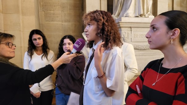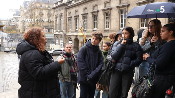 Les élèves du lycée Sophie Germain avec Maître Pascale Edwige dans la Story de Mohamed Bouhafsi dans le C’est à vous du 27 novembre