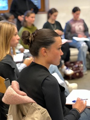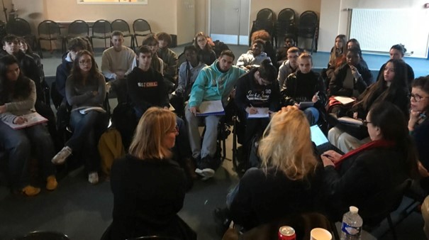 Élèves du lycée Jean-Baptiste Corot dialoguant avec les témoins Nabiha Mérabet et Aurélia Gilbert