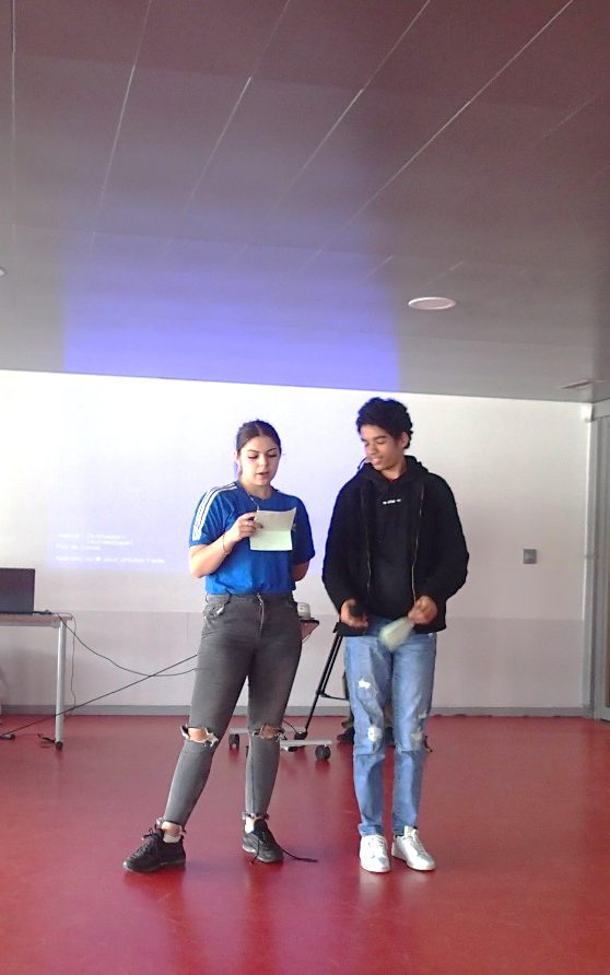 En mai, nous revenons et ils nous font entendre une musique sur laquelle ils écriront, en atelier d’écriture avec Jodie Lindemann, CPE, un slam qui fera entendre dix voix : ils ont en effet créé dix « profils » d’élèves qui pour différents prétextes sont exclus (pour homosexualité, pour pauvreté, …) et le clip confectionné en atelier d’Arts appliqués avec Emma s’appellera « Vivre ensemble ».
