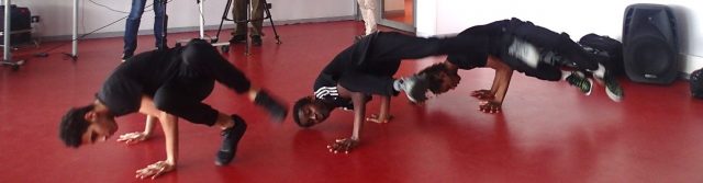 Ils nous offrent ensuite une chorégraphie qu’ils ont préparée avec Louis, un AED : et sans parole cette fois, nous lisons dans les gestes des trois danseurs la vie et la mort, la blessure, la terreur et l’espoir. Nous en sommes très émus et reconnaissants.