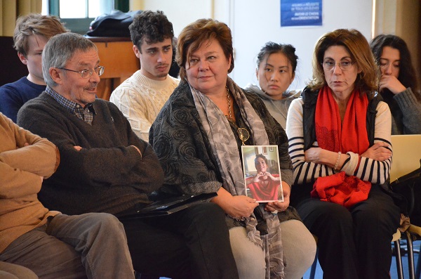 Cette rencontre était l’un deux moments forts de la journée du 21 novembre, consacrée à la Mémoire au lycée Claude Bernard. Le matin, nous avons assisté à la projection du film de Serena Dykman, Nana, un documentaire sur Marila Michalowski, sa grand-mère, rescapée d’Auchwitz. C’est Alice Michalowki, fille de Marila et mère de Serena, qui présentait le documentaire aux élèves et étudiants. Il était question de deux transmissions imbriquées l’une dans l’autre : celle d’une mission transmise par Marila à Alice puis à Serena d’aller dans les classes transmettre à la jeunesse combien il convient d’être vigilants contre l’antisémitisme. Et c’est précisément après l’attentat au Musée juif de Bruxelles le 24 mai 2014 et les attentats de 2015 à Paris que Serena décide de produire avec Alice son documentaire.