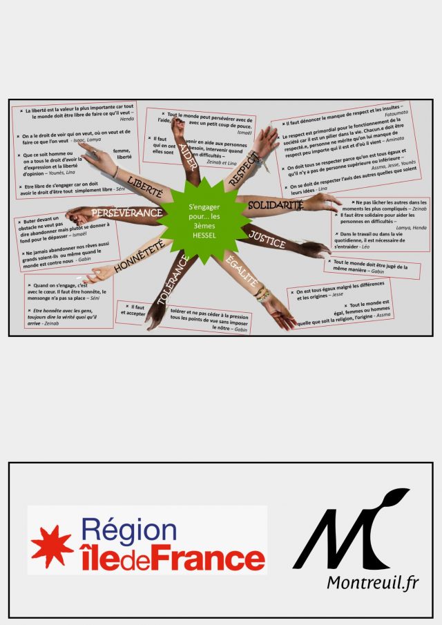 Lors de cette rencontre deux élèves ont tenus à prendre la parole et à présenter leurs trois valeurs d’engagement. Pour Yanis, l’égalité est importante car « on doit tous avoir les mêmes droits », le respect est également une valeur fondamentale « que quelqu’un soit handicapé ou aveugle nous devons le respecter, même s’il bégaye, on lui doit le respect », enfin, Yanis cite la bienveillance « Si quelqu’un ne se sent pas bien, qu’il a besoin de quelque chose, on doit le consoler et l’aider »