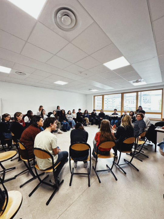 Les témoins ont été impressionnés par l’éloquence et la pertinence des lycéens face à eux. Ces derniers ont été marqué par la sincérité, la justesse et la résonnance des mots de David et Aurélie. On a traversé des émotions en tout genre : chagrin, nostalgie et mélancolie mais aussi (et surtout) complicité, rires, et satisfaction d’avoir vécu ce moment ensemble. Dans un sens comme dans l’autre, on a vu du partage – du partage d’expériences, du partage d’émotions, mais aussi, de manière un peu plus inattendue dans une salle de classe, du partage de sons.