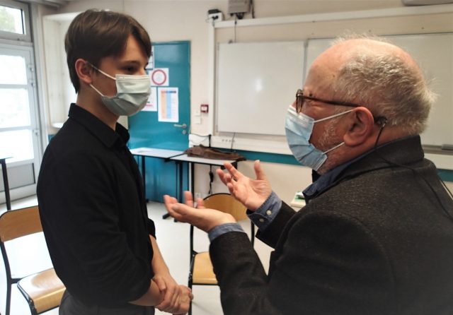 Les lycéens reçoivent Samuel Sandler, père de Jonathan, grand-père d’Arié et Gabriel, tous trois assassinés devant l’école Ozar Hatorah de Toulouse le 19 mars 2012, et Emmanuel Domenach, survivant du Bataclan.