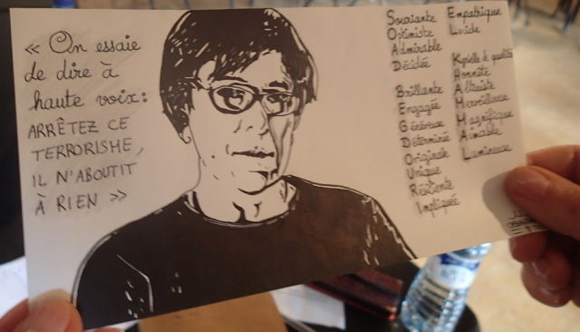 Il y a aussi La légèreté, récit illustré de Catherine Meurisse : elle arrive en retard, le jour de l’attentat. Elle se reconstruit par la recherche du beau.