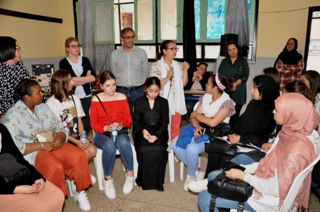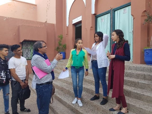 C’est cette fois le lycée privé WAHATE EZZAYTOUNE ATLAS qui nous accueille, dès le matin, dans sa magnifique bibliothèque : les élèves ont préparé quelques petites saynètes mettant en scène le vivre ensemble. Après cette belle introduction, nous nous retrouvons autour d’un petit-déjeuner marocain, avant de nous répartir entre différents ateliers pour travailler autour du thème du vivre ensemble entre lycéens marocains et français : atelier vidéo, arts plastiques, écriture, anglais…