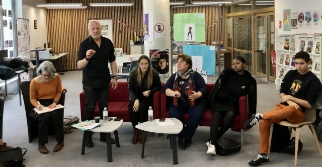 L’enseignement d’Histoire, Géographie et EMC (éducation civique et morale) n’est que de deux heures hebdomadaires pour chacune des deux Terminales STMG – c’est peu dans un emploi du temps de Terminale – leur professeure, Sophie Davieau-Pousset, estime qu’en cette dernière année de lycée pour eux, il est de son devoir de les accompagner et de les encourager dans leur réflexion et leur ouverture sur le monde. C’est pourquoi tous les quinze jours ces deux classes se prêtent à l’exercice d’une « causerie » et abordent tous les sujets.