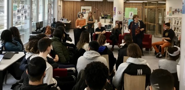 Lorsque nous sommes arrivées dans ces deux classe en février dernier, nous avons à notre tour « causé » avec eux, cette fois-ci de la violence terroriste : elle aussi leur est finalement familière car on en parle beaucoup dans les médias, on en parle entre soi et il n’est pas facile d’en parler dans le cadre scolaire, devant la classe entière et les professeures.